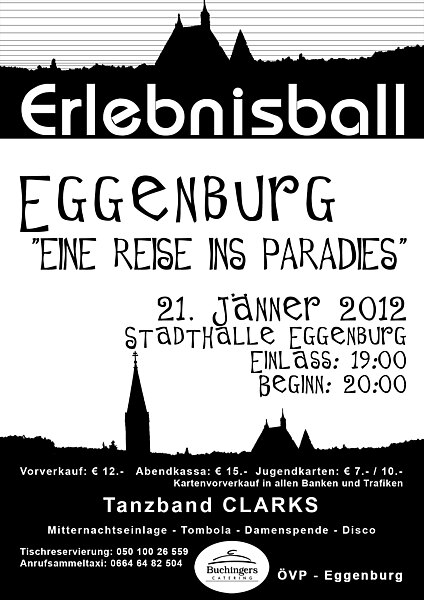 "Eine Reise ins Paradies" erlebten am 21. Jänner 2012 über 500 Ballbesucher in der Stadthalle Eggenburg. Und es war tatsächlich wieder ein besonderer Erlebnisball mit einem vielfältigen Angebot von der Walzereröffnung bis zur Disco, von einer fulminanten Mitternachtsshow bis zur Supertombola, von der Cocktailbar bis zum Bocciaspiel!