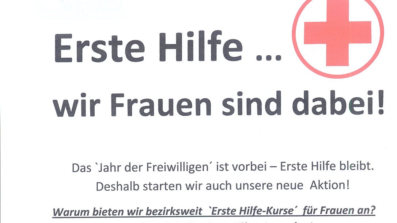 Ein besonderes Angebot für alle Frauen in der Großgemeinde Eggenburg - Der erste Hilfe Kurs für Frauen - Bitte um rasche Anmeldung bei ÖVP-BGS Horn Maria van Dyck 02982/2407 bzw. horn@vpnoe.at