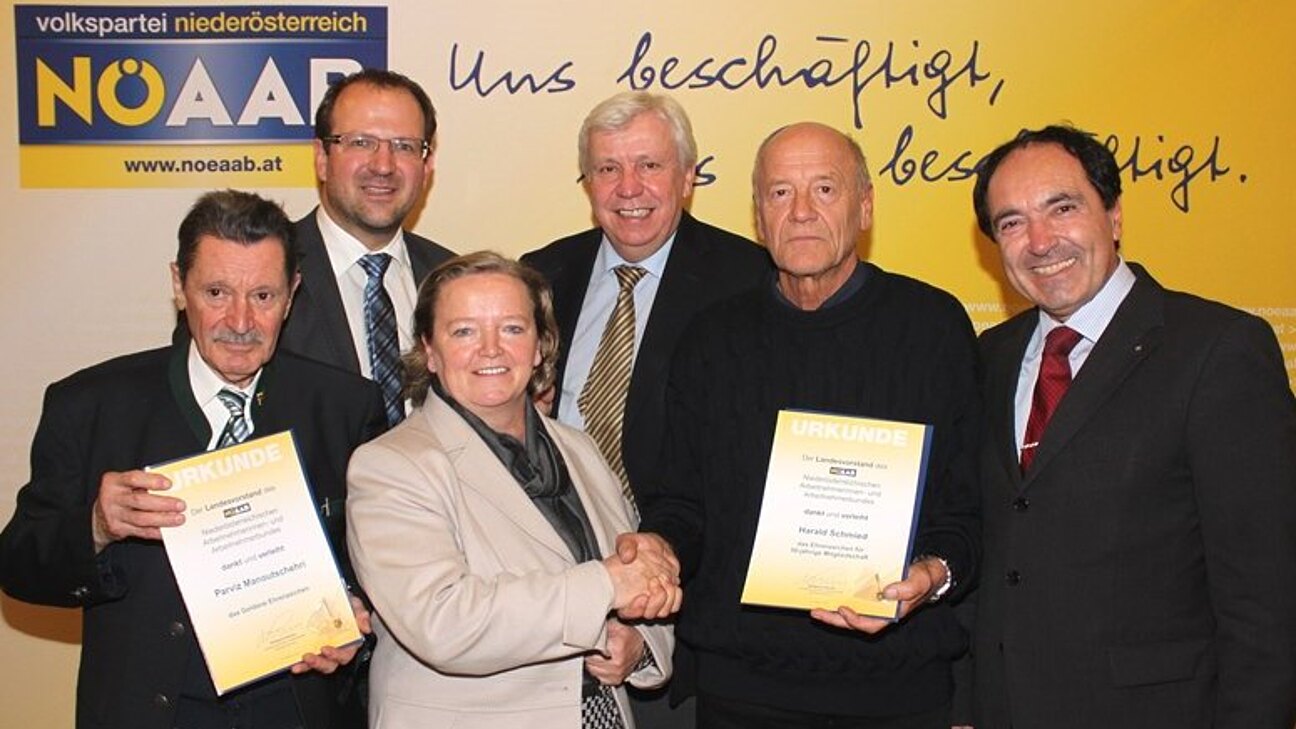 ÖAAB-Ehrungen für Harald Schmied und Parvis Manoutscheri.