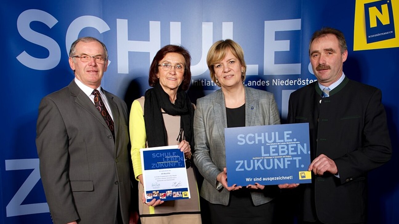 Bildungslandesrätin Barbara Schwarz: "Im Rahmen dieser Initiative setzten sich alle Beteiligten mit der Bedeutung der Volksschule als Standort in der Gemeinde und ihrem Beitrag für ein gelungenes Miteinander in der Region auseinander." Zehn Volksschulen aus dem Bezirk Horn wurden ausgezeichnet: